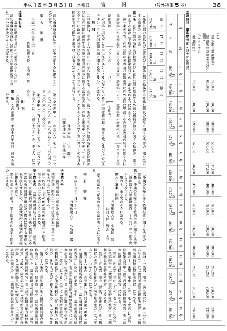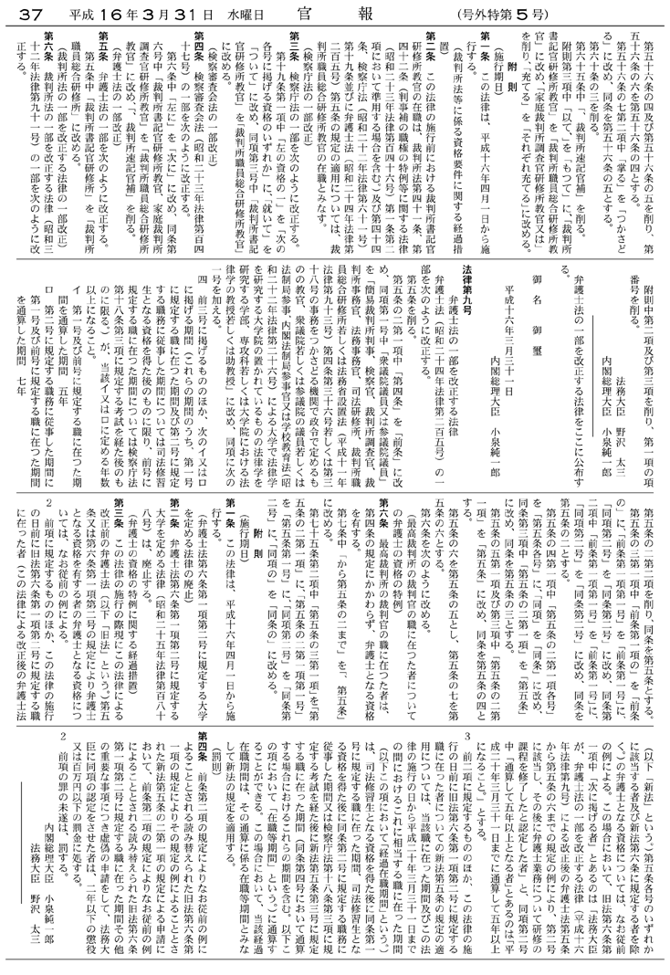 | ○附 則(平成16年6月18日法律第120号)(裁判所法等の一部を改正する法律) | |