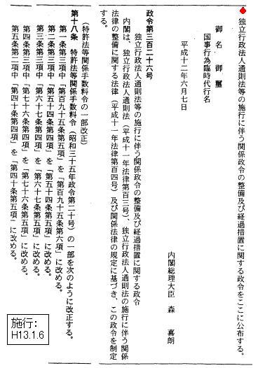 ・平成12年6月7日政令第326号(独立行政法人通則法等の施行に伴う関係政令の整備及び経過措置に関する政令)第18条(手数料令改正) 施行:平成13年1月6日 官報